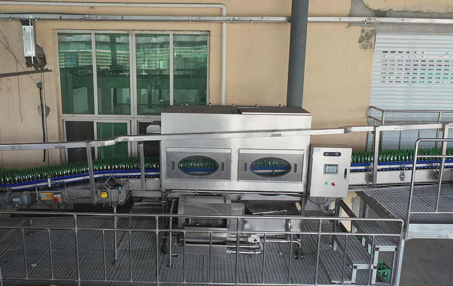本机主要适用于啤酒、饮料等回收瓶预清洗之用。将洗瓶机的溢流水回收再利用,达到节约用水、用碱及热能源再利用,预清洗还能帮助提高洗瓶机的洗净率、降低碱耗及预热瓶子等目的,本机可代替原预浸泡时间过短又无场地增加预浸泡箱体的洗瓶机来实现增长预浸泡时间,相当于外置一套在线预浸泡槽,增加洗瓶机的洗净率。